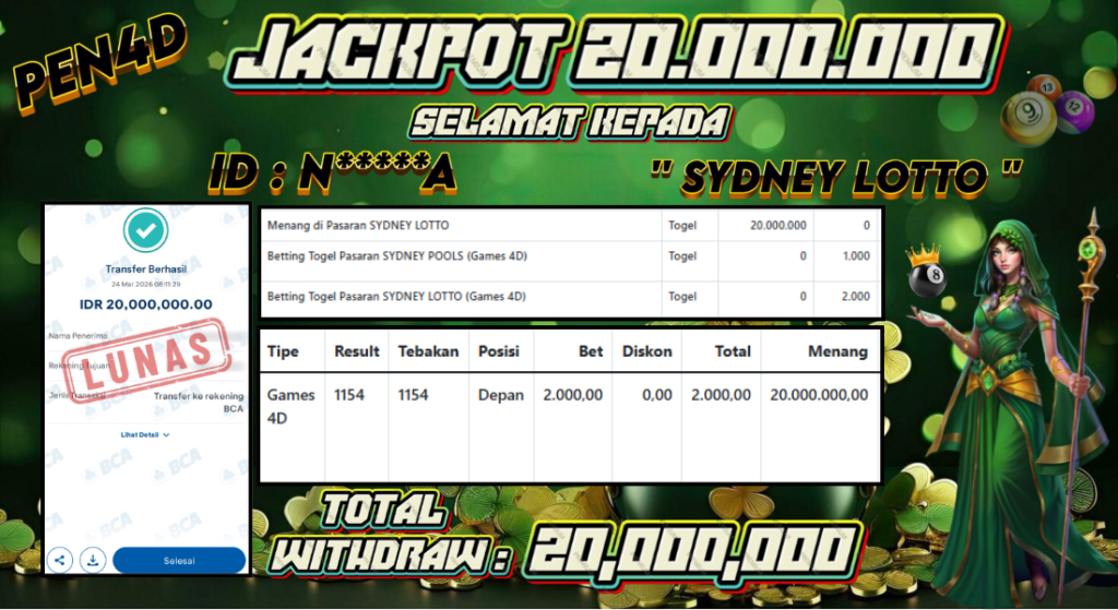 Selamat datang di platform terpercaya PEN4D. Pada kesempatan kali ini, kami menampilkan kemenangan jackpot serta bukti pembayaran withdraw yang telah diterima oleh member setia kami.
