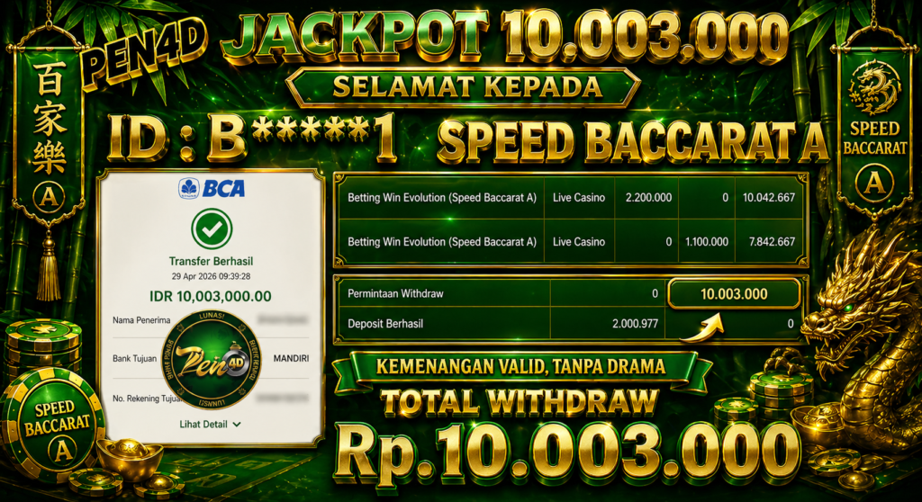 Selamat datang di platform terpercaya PEN4D. Pada kesempatan kali ini, kami menampilkan kemenangan jackpot serta bukti pembayaran withdraw yang telah diterima oleh member setia kami.