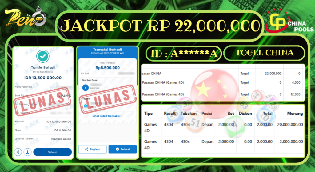 PEN4D $ Kemenangan Jackpot dan Bukti Pembayaran Withdraw Hari Ini 01 – FEBRUARY – 2026