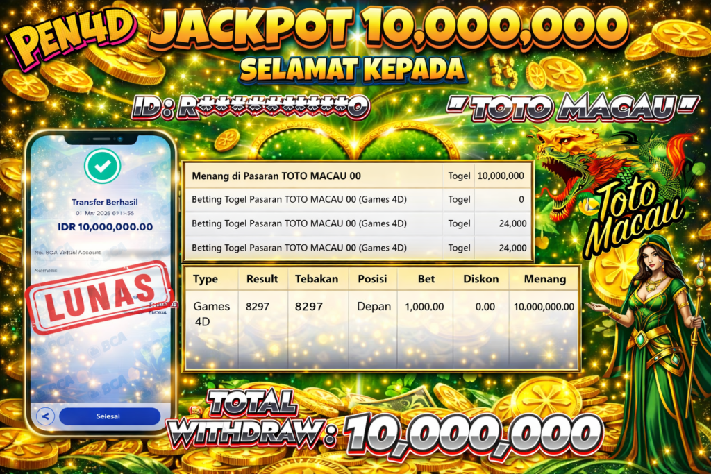 PEN4D $ Kemenangan Jackpot dan Bukti Pembayaran Withdraw Hari Ini 01–MARET–2026