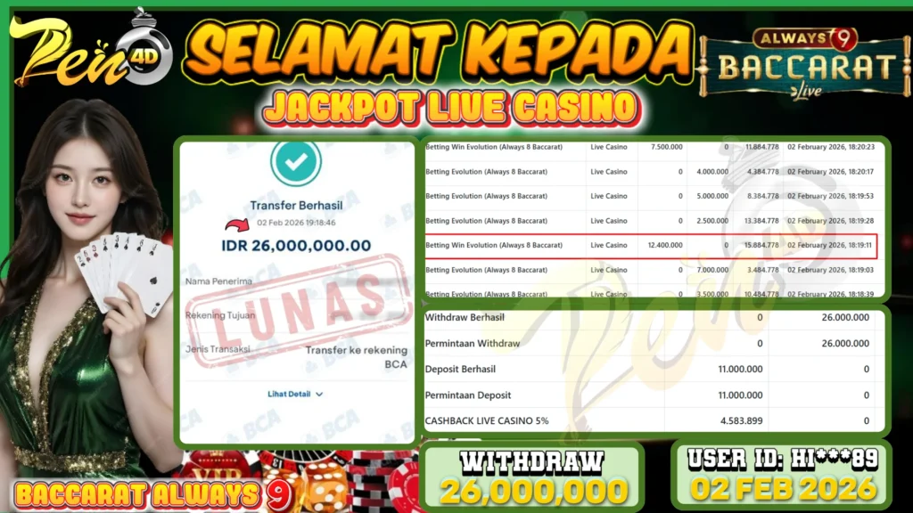 PEN4D $ Kemenangan Jackpot dan Bukti Pembayaran Withdraw Hari Ini 02 – FEBRUARY – 2026