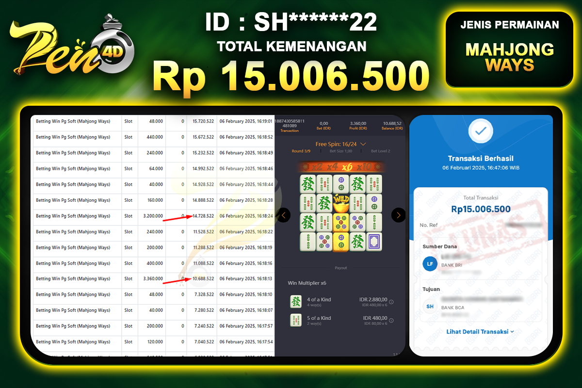Selamat Datang Di Platform Terkenal Pen4D, Berikut Kami Akan Menampilkan Seluruh Kemenangan Jackpot dan Bukti Pembayaran Withdraw Yang Di Dapatkan Oleh Seluruh Member Setia Kami.