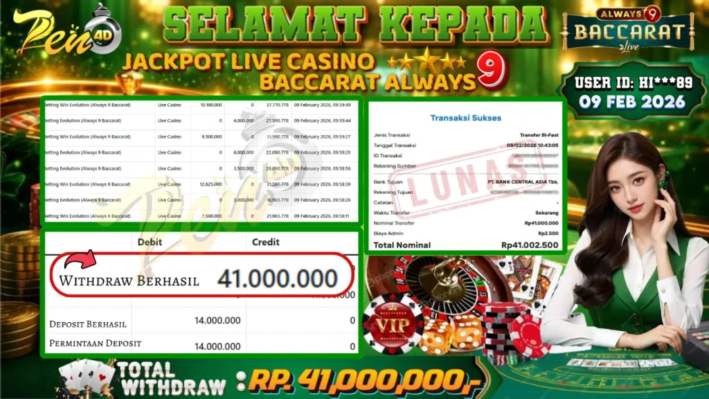 PEN4D $ Kemenangan Jackpot dan Bukti Pembayaran Withdraw Hari Ini 09– FEBRUARY – 2026