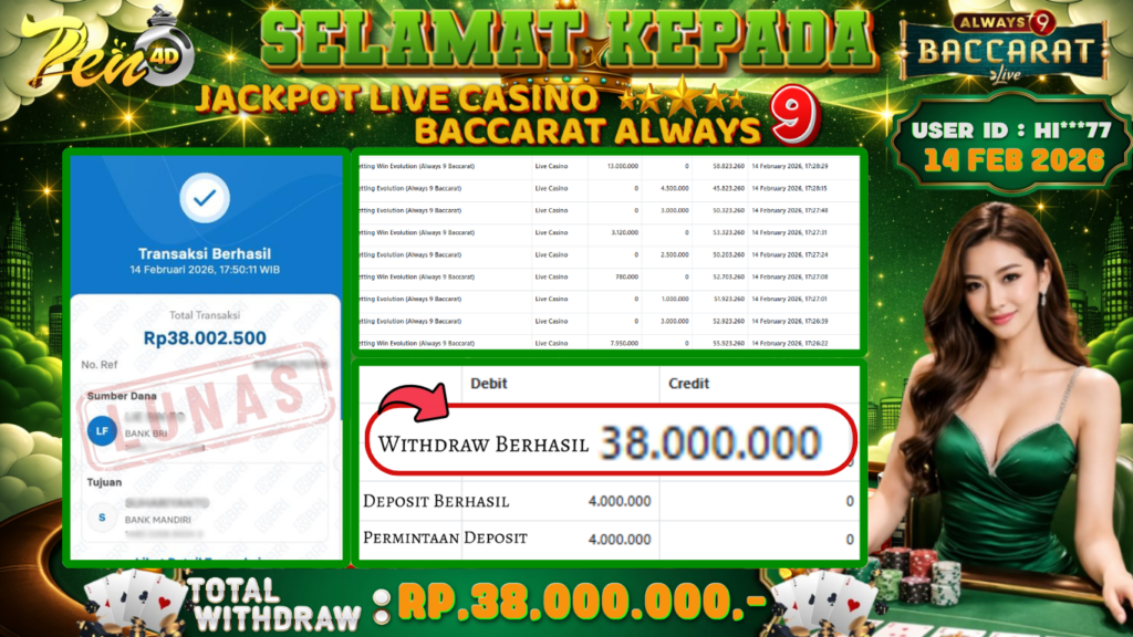 PEN4D $ Kemenangan Jackpot dan Bukti Pembayaran Withdraw Hari Ini 14–FEBRUARY–2026
