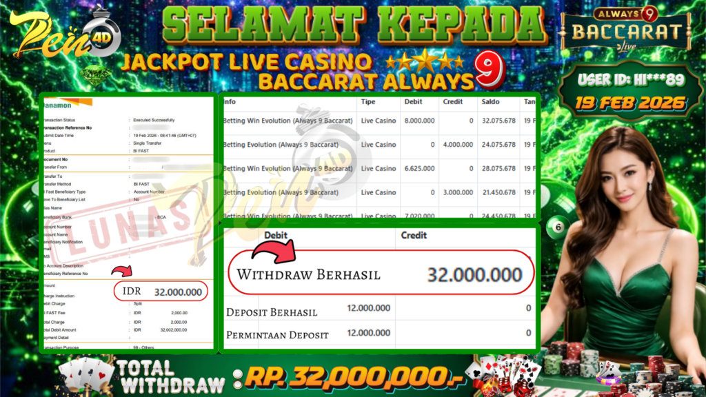 PEN4D $ Kemenangan Jackpot dan Bukti Pembayaran Withdraw Hari Ini 19–FEBRUARY–2026