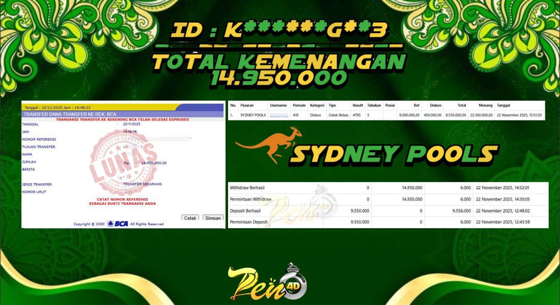 PEN4D $ Kemenangan Jackpot dan Bukti Pembayaran Withdraw Hari Ini 22 NOVEMBER 2025