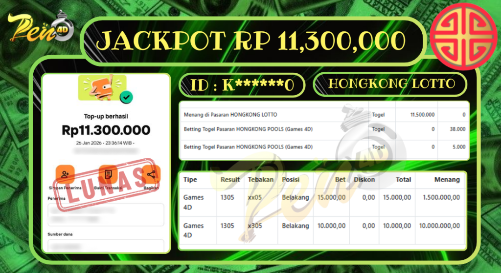 PEN4D $ Kemenangan Jackpot dan Bukti Pembayaran Withdraw Hari Ini 26-JANUARI -2026